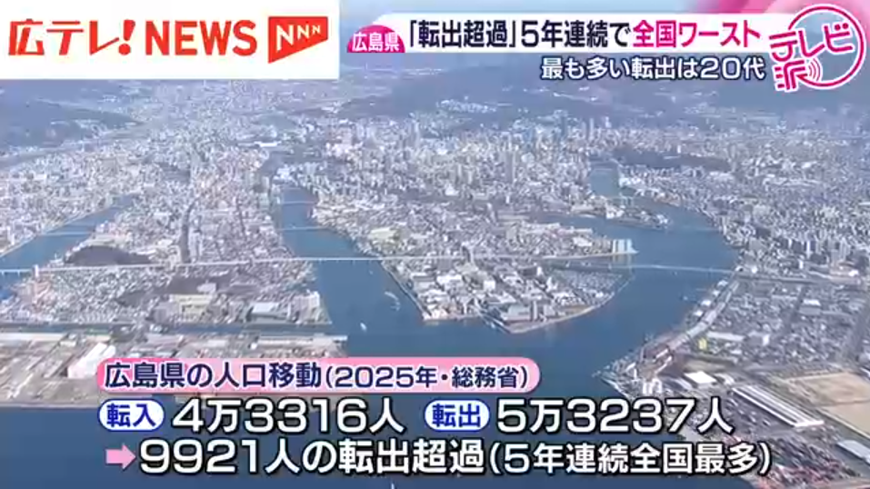 「転出超過」広島県が5年連続で全国最多 若者の流出ストップへ