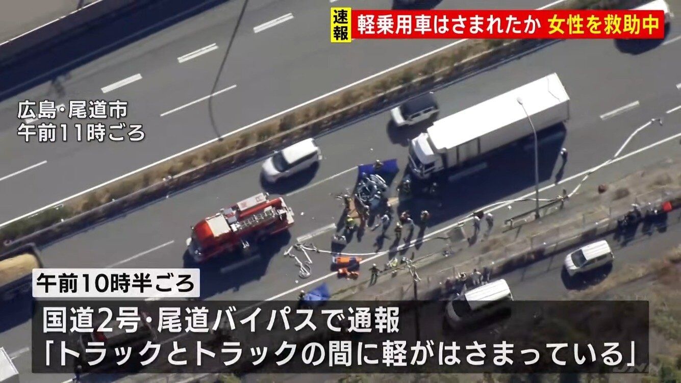 【速報】「トラックとトラックの間に軽四自動車が…」と通報 尾道バイパスで事故 広島