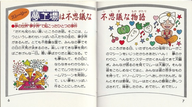 元々の夢工場の話はドリームマシーンってので魔物作りまくって暴れてたマムーが野菜で倒されるまでの絵本ってのがあって