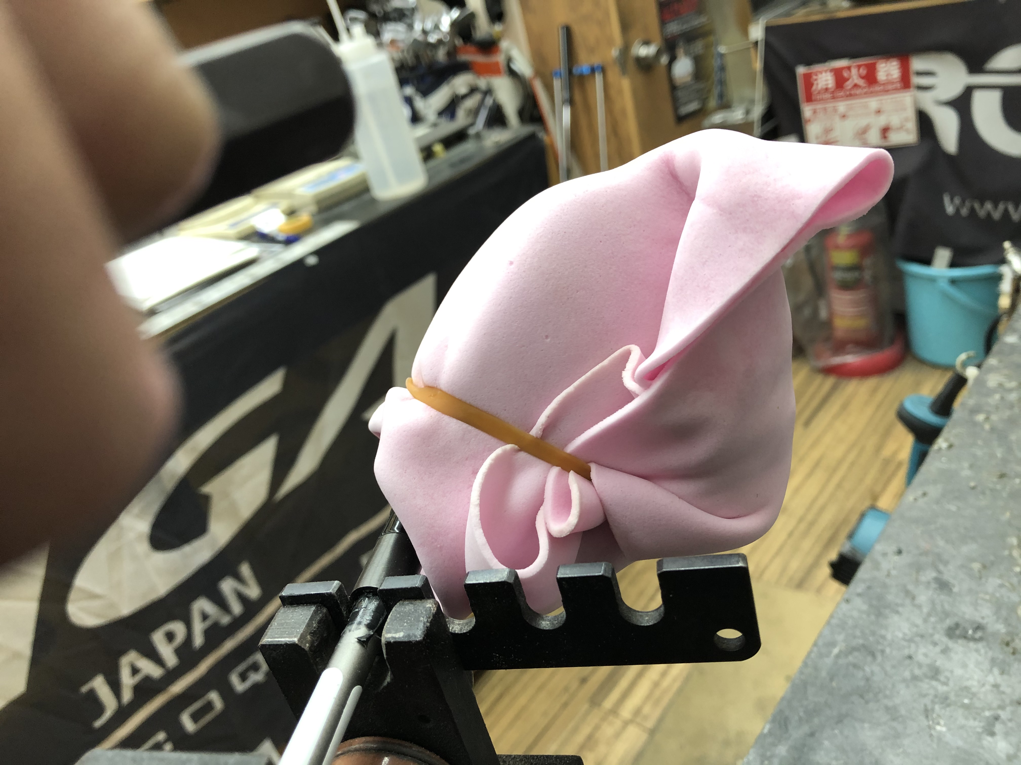 弾性率の高いシャフトの挿し直しは弾性率が高い故、弾けるリスクもあるのですが、幸いドライバーシャフトより重量がある分先端の厚さもあり剛性が高いので、極力熱を加えないように慎重に(^^)