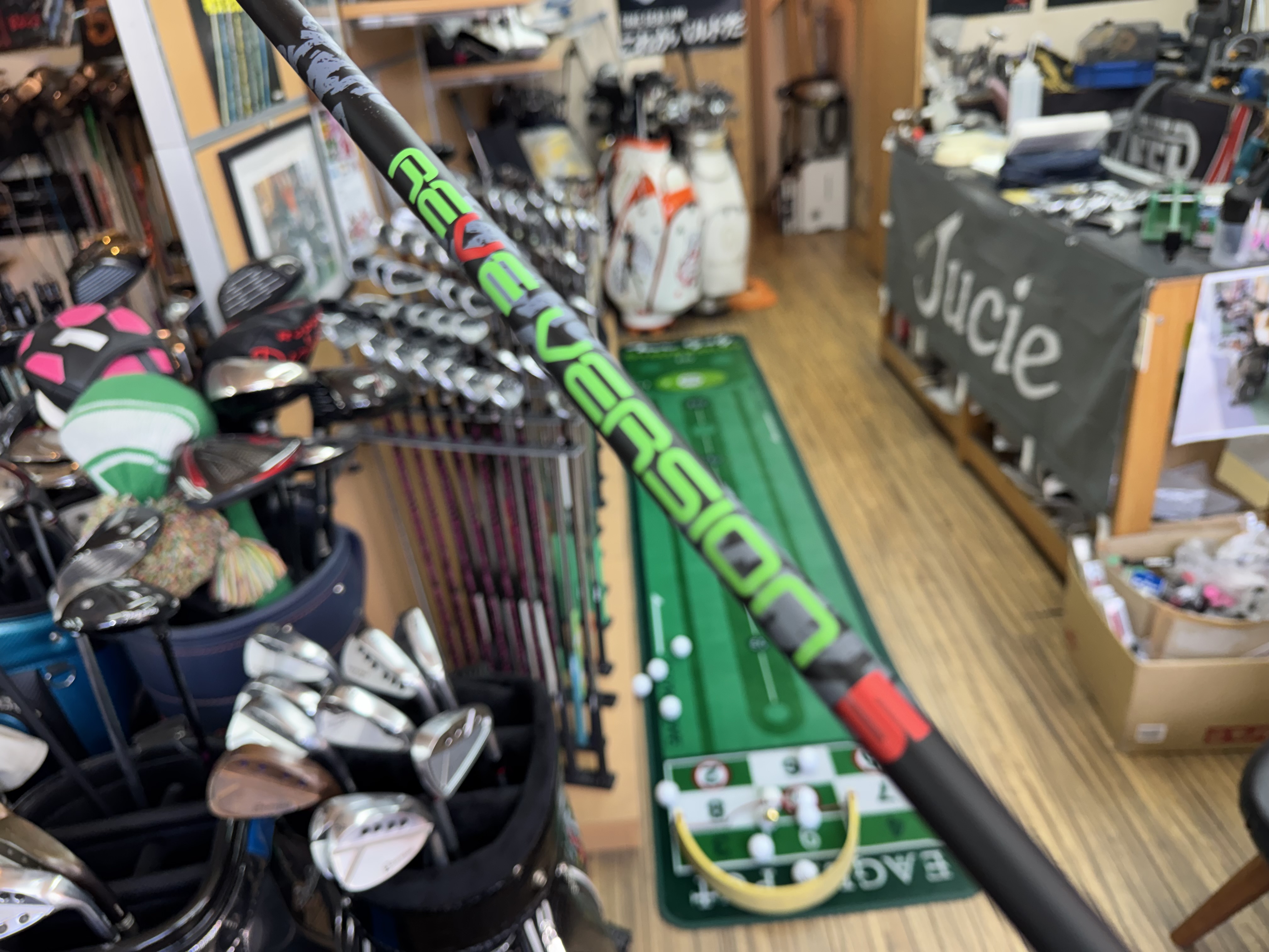 今のREVEシャフトの中では、ややしっかりしているシャフトですが、大手メーカーのプロユースからモノづくりされたもののRよりはしなやかです。
