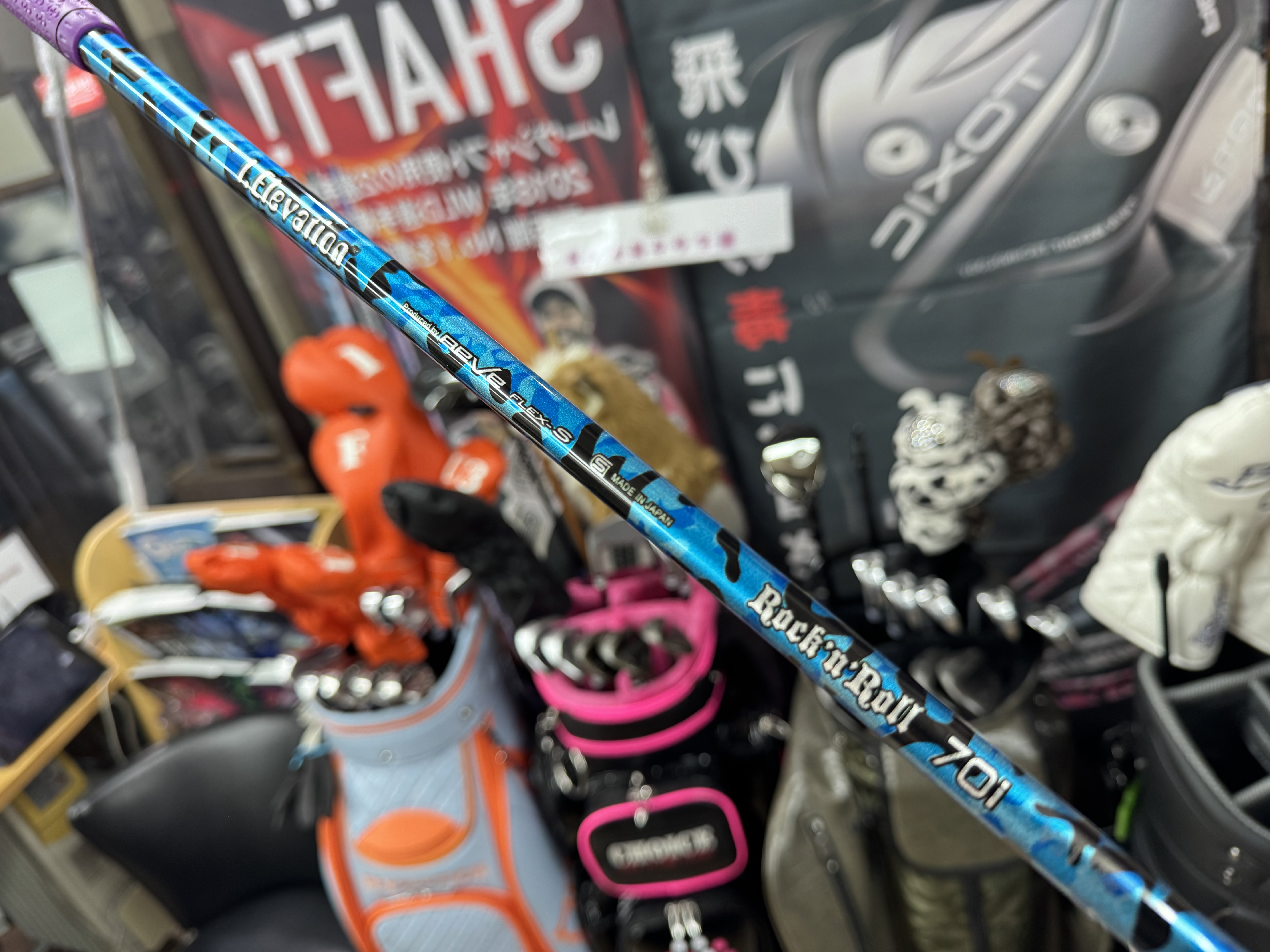 T坂様らしく、ブルーのシャフトにパープルのグリップで👍
