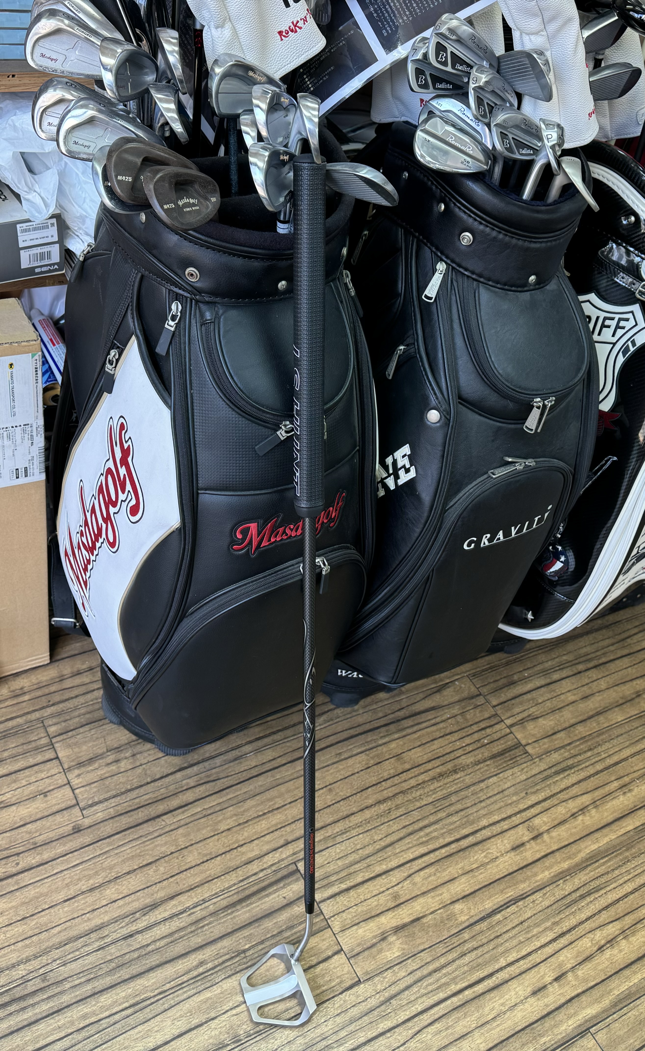 スタビリティシャフトと同じ製法なのですが、中尺まで対応できるようにシャフト長が長いのと、中尺にしてもヘッドの感性を殺さないように100g程と、重量が控えめです。41インチまで組めます。今回はライ角との絡みもあり39インチで組みました。