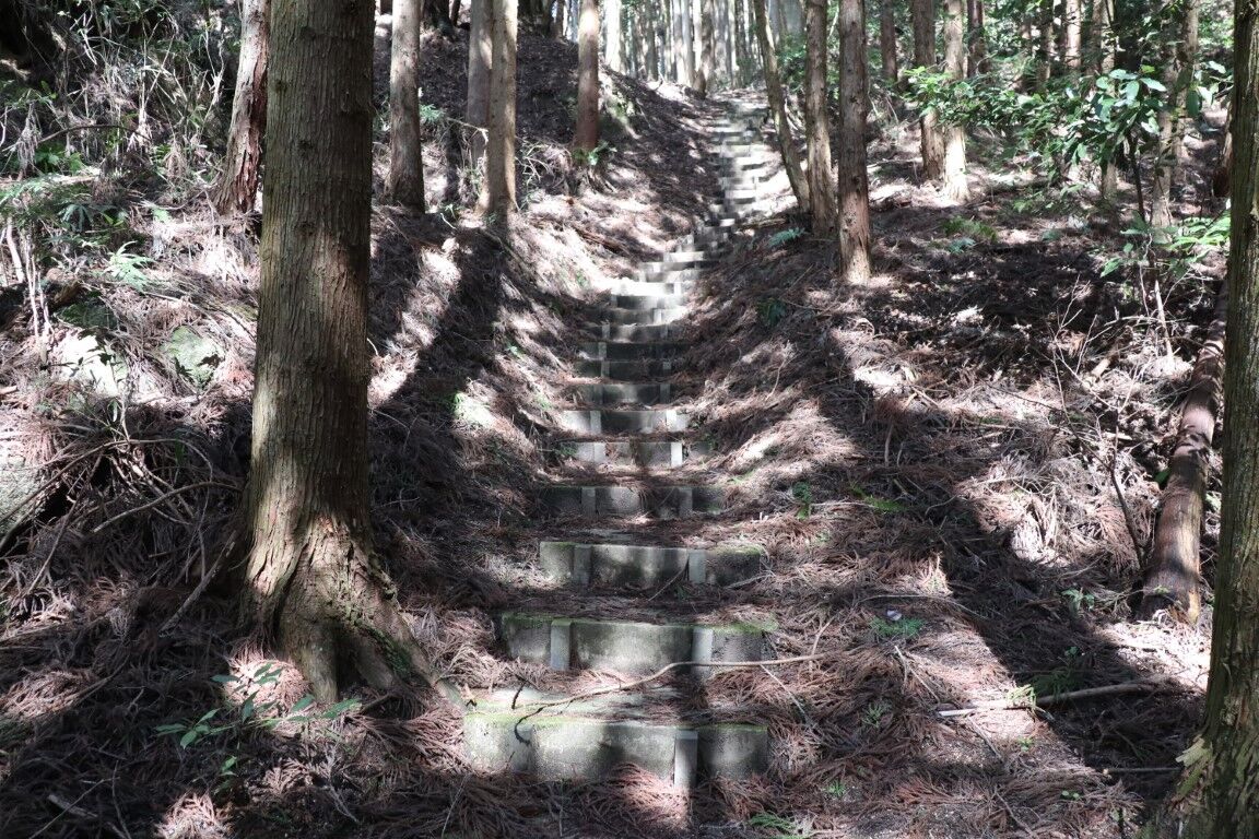 杖が用意されてるように、延々上りの階段が続きますので、ありがたくお借りします。