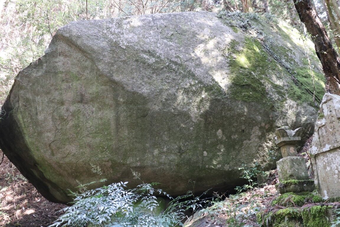 ここで終わりではありません。右手の山道を登っていくと、枡形の巨石があります。