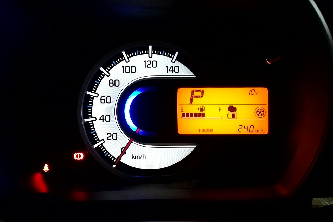 老眼には有難いヘッドアップディスプレイ、それもフロントウインドウに映し出すタイプが設定されてます。