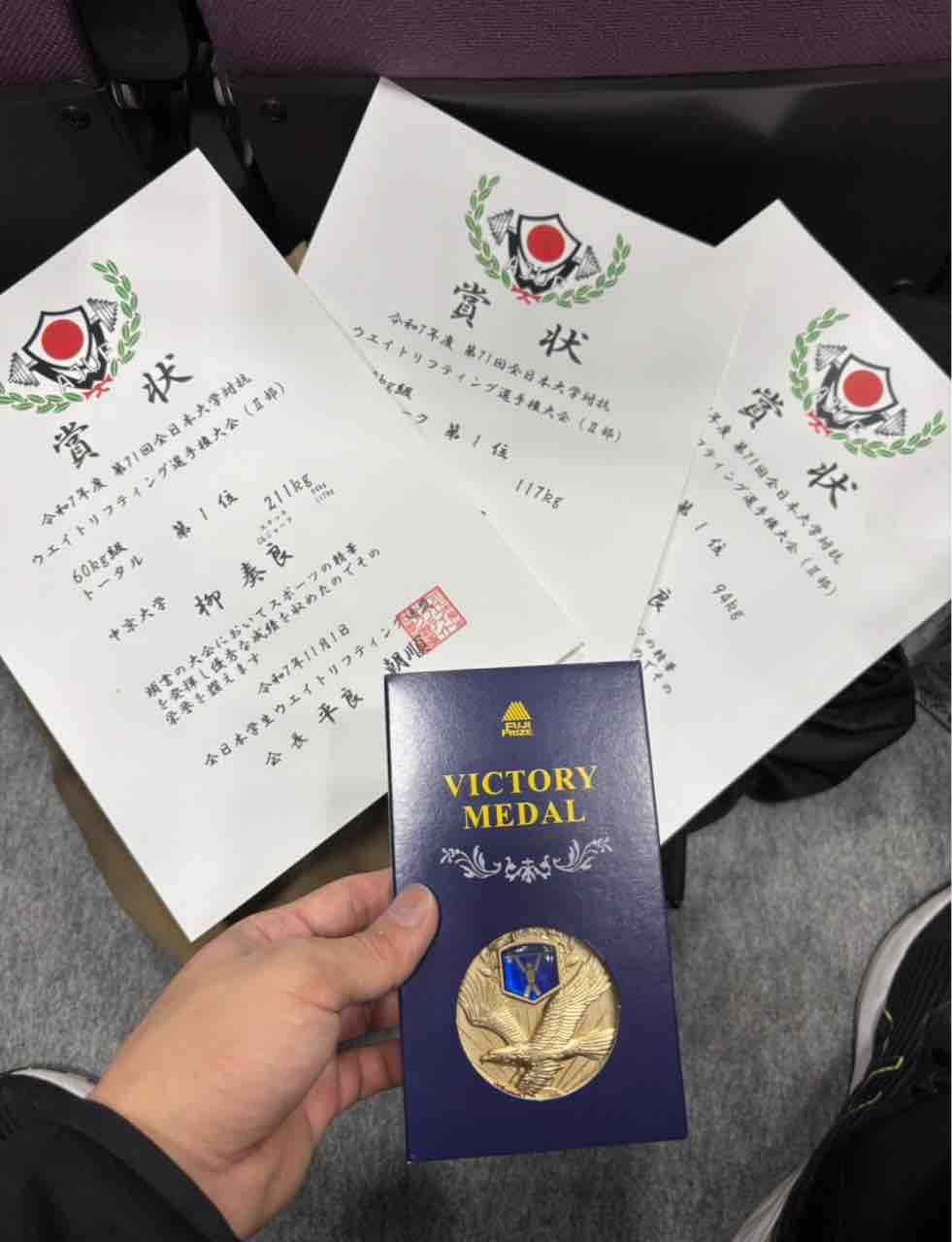 2025年11月05日 インカレ 大4年の息子にとって、最後の大会。見事、優勝を飾る事が出来ました。まだ、雑魚い大会はあるらしいですが、インカレで、ジャーク、スナッチと、トータルで一位なら、もう言う事ないでしょう!前回の国体で自己新は更新したものの、自爆ミスもあり、成績が振るわなかったので、今回、この成績で、有終の美を飾る事が出来た事は、本人も納得し、親としても嬉しい限りです。就職して続けるのかどうか知りませんが、まずは、酷使したガタガタの身体を休め、リフレッシュする事が先決です。とりあえず、お疲れ様〜 コメント コメント一覧 (4) 1. がばちょ 2025年11月05日 07:41 うわぁ! S良君、おめでとうございます✨ 1位か〜、スポーツをする以上は欲しいタイトルですよね。 それを叶えたS良君は素晴らしいです。 バカ親をしてきた甲斐がありましたね、父上! 2. 富田 2025年11月05日 08:08 卒業後は格闘家ですか? 3. 柳 2025年11月05日 15:25 ★がばちょさん、 そうですよね、基本勝たなければ、スポーツじゃないですから。 接骨院や病院も色々連れて行ったので、 とりあえず、身体を休めて欲しいです。 4. 柳 2025年11月05日 15:28 ★富田、 めざせ!ケンパテラ! …うそうそ。 コメントフォーム 名前 コメント 評価する リセット リセット 顔 星 投稿する 情報を記憶