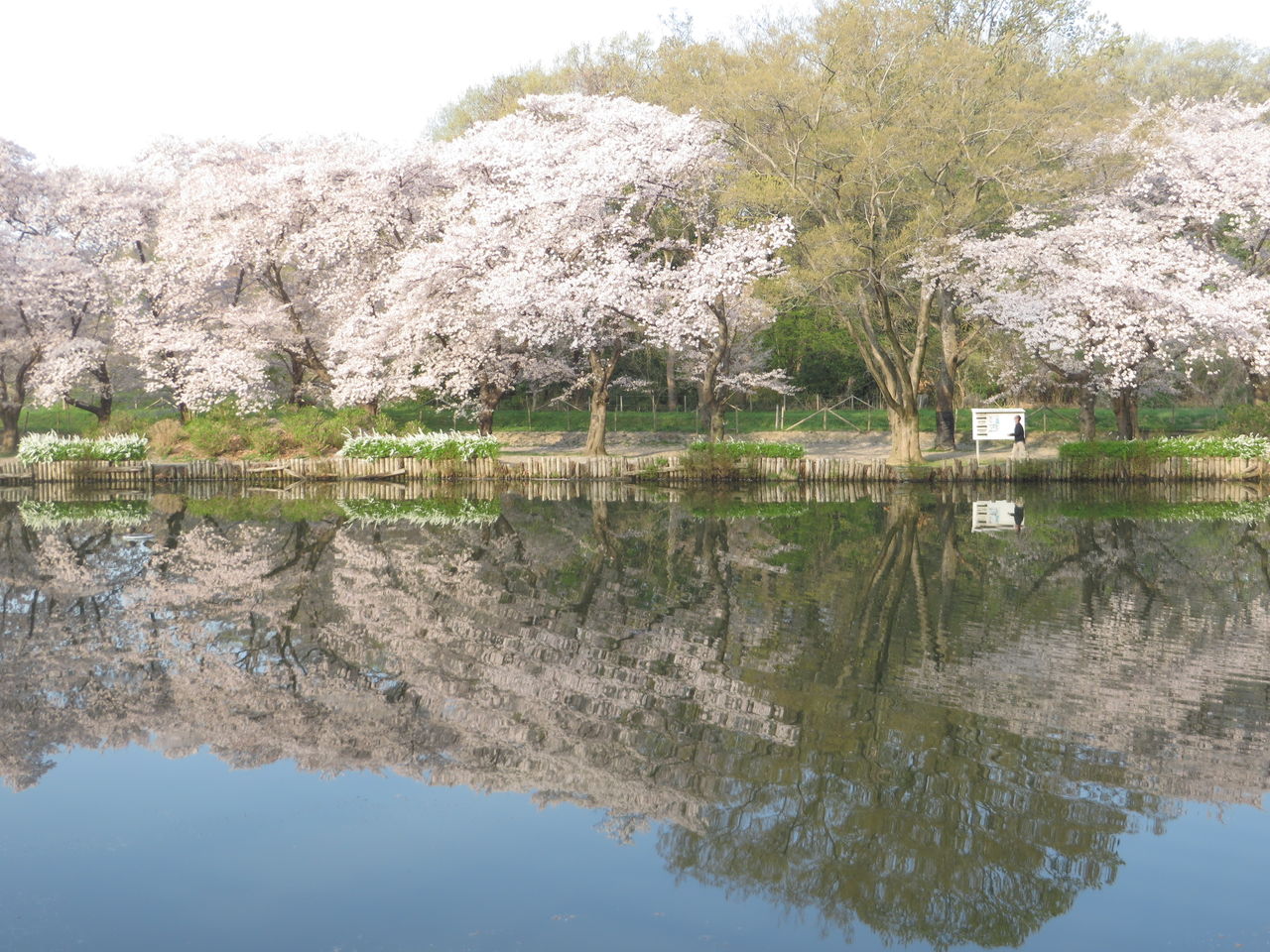 ノンビリ園内を歩いていると池に桜が綺麗に映っていたのでここでも一枚。