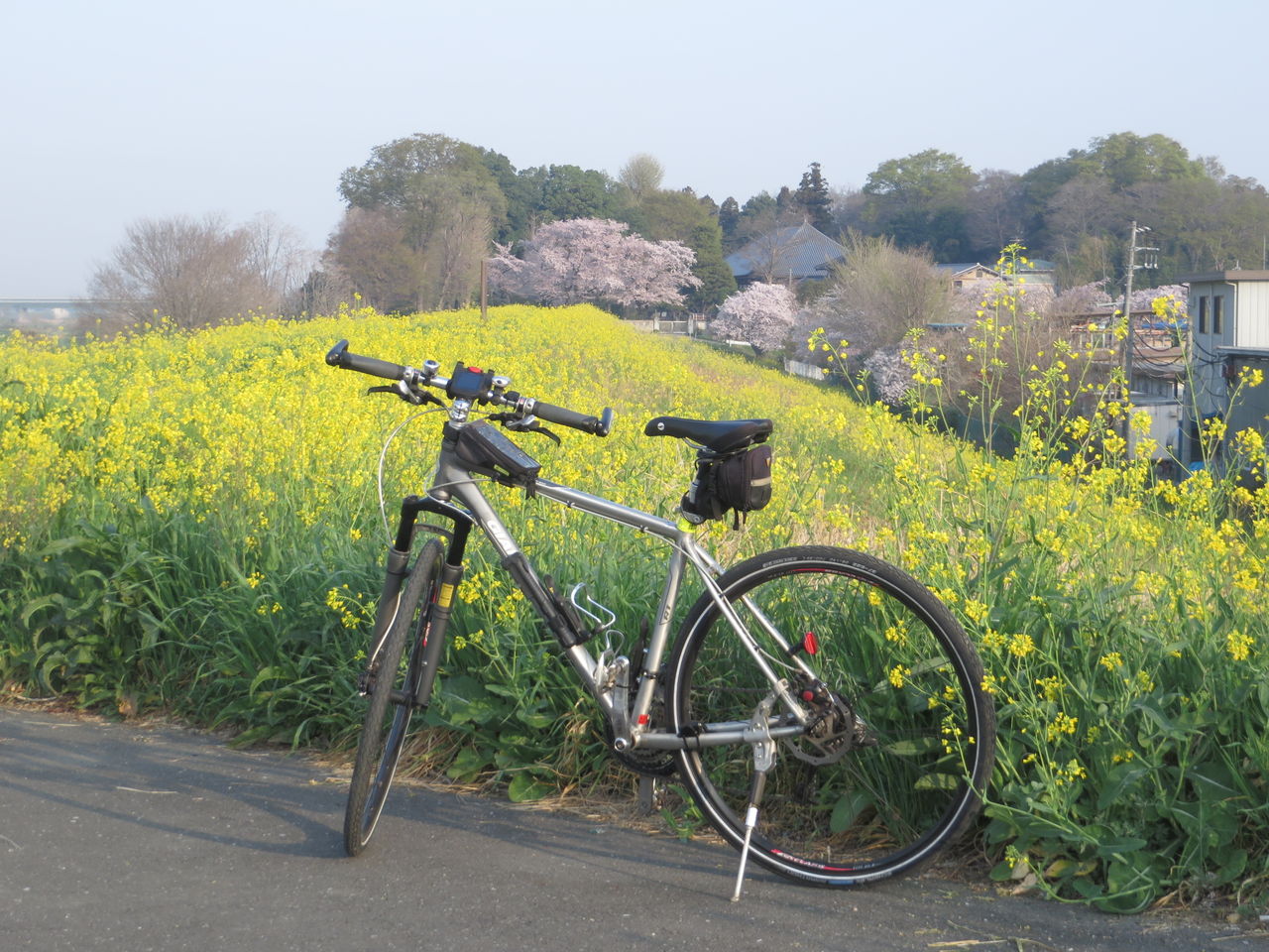 たまには自転車もと思い堤通りの下の方から一枚パチリ’(菜の花が少ないのが残念)