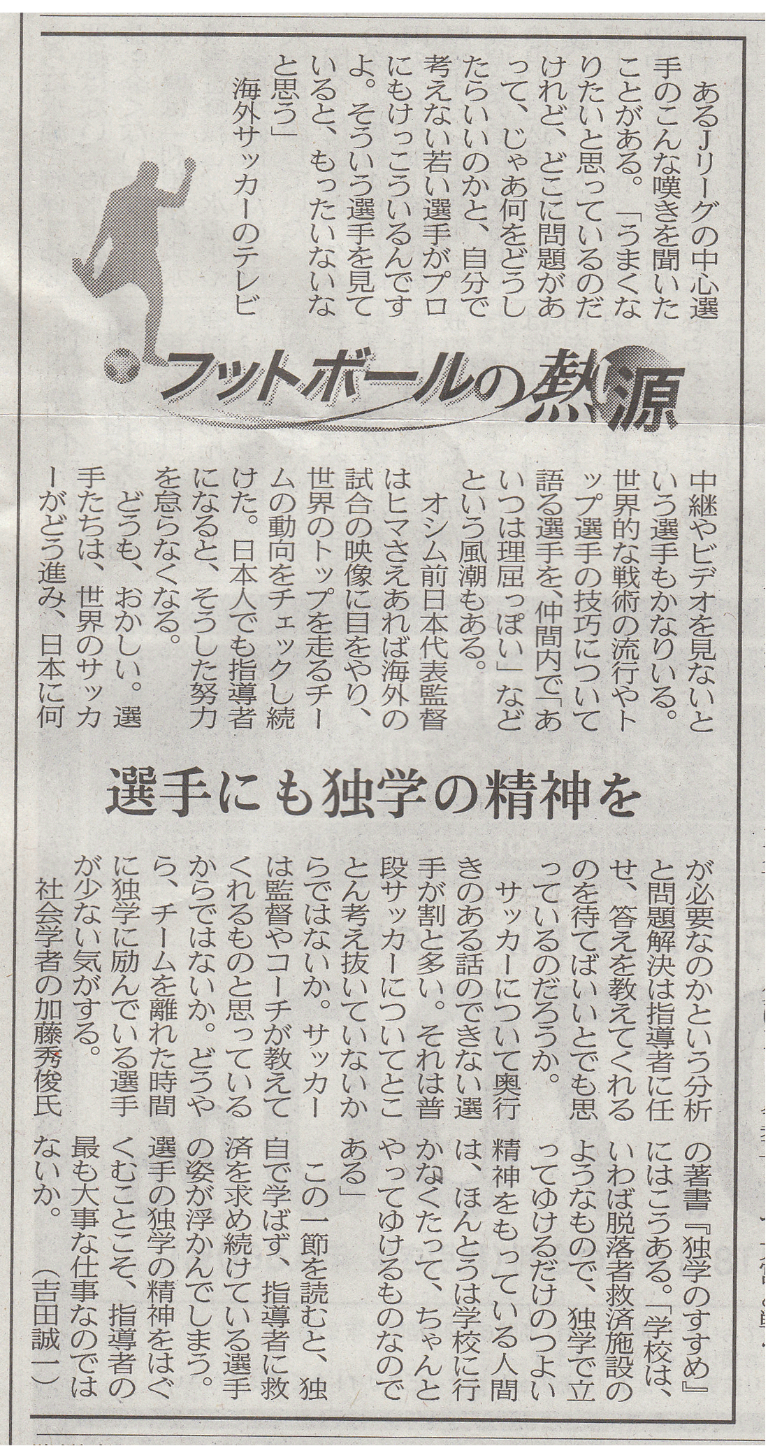 Ê̤ΤªÏäλþ¤Ë¡¢º£Ä«¤ÎÆü·Ð¿·Ê¹¤Îµ»ö¤Ç¡¢ºÇ¶á¤Î¥×¥í¥µ¥Ã¥«¡¼Áª¼ê¤ÎÃæ¤Ë¤Ï¼«¤é¹Í¤¨¤Ê¤¤Áª¼ê¤¬Â¿¤¯¤Ê¤Ã¤Æ¤¤Æ¤¤¤ë¤È¤¤¤¦¥³¥é¥à¤òÆÉ¤ó¤À¤Î¤ò»×¤¤½Ð¤·¤Þ¤·¤¿¡£