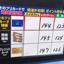1月30日、衆院選のさなかに給油してきました。 にほんブログ村 場所はいつもの地域一番安いであろうセルフスタンド、 レギュラー1リットルの価格はプリカ利用で140円、 前回給油した時より少し下がってました。 130円台まであと少しです。 160円台~170円台まで上がっていた ...