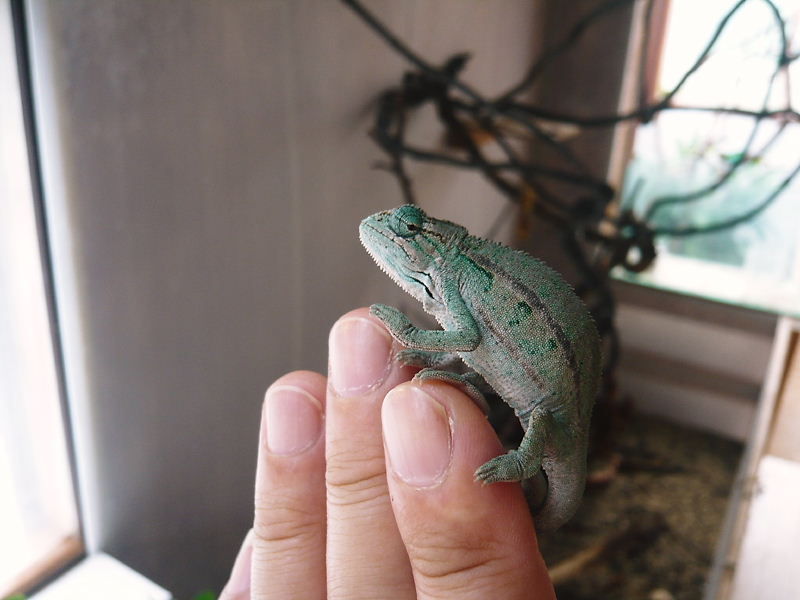 今はカメレオンに限らずヤモリ達も一匹ずつ手で与えてます