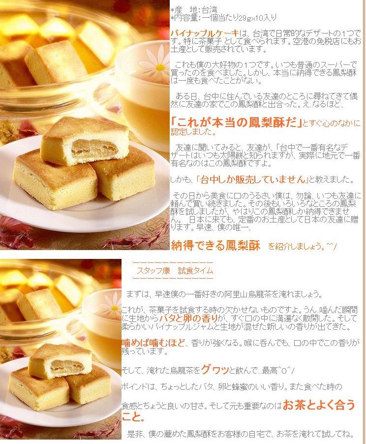 すみません。チャーリーが参考のつもりで送ってきたサイトを本人のサイトと間違えました(笑)。本人のサイトはまだできていないそうです。もしもう注文した人がいたらすみません。まあ、このパイナップルケーキもおいしいですよ、たぶん(笑)。