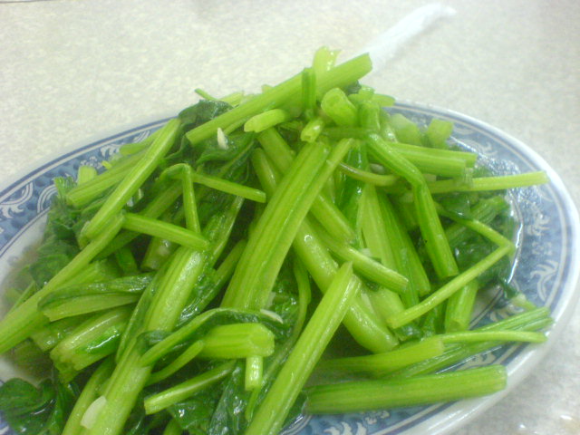 很多台灣的炒青菜是只用蒜頭炒, 很單純(日本的炒青菜通常用很多種蔬菜跟肉)。我非常喜歡空心菜的炒青菜。