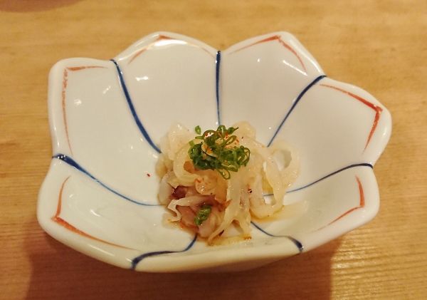お通しにはクラゲが。ジャキジャキの歯ごたえが楽しい♪