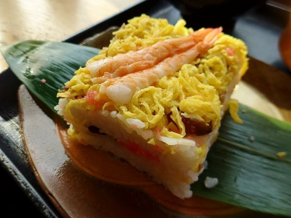 四角い形をした押し寿司です。その昔は岩国のお殿様や武士しか食べられなかったから「殿様寿司」とも呼ばれているんだとか_〆(゚▽゚*)
