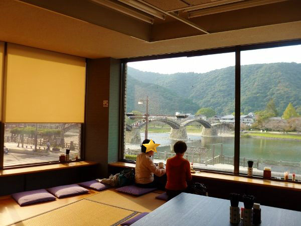 ここはお土産屋の奥にちょろっとある飲食スペースなんだけど・・目の前が錦帯橋っていう!ナイスビュー過ぎる!✨