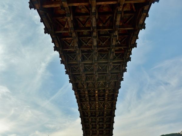 下からも。精巧に組まれた木組みが美しい・・。