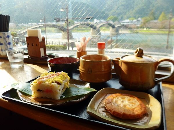 錦帯橋を眺めながら、名物の「岩国寿司」を!