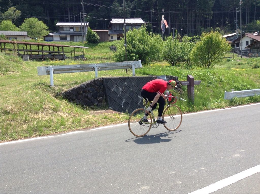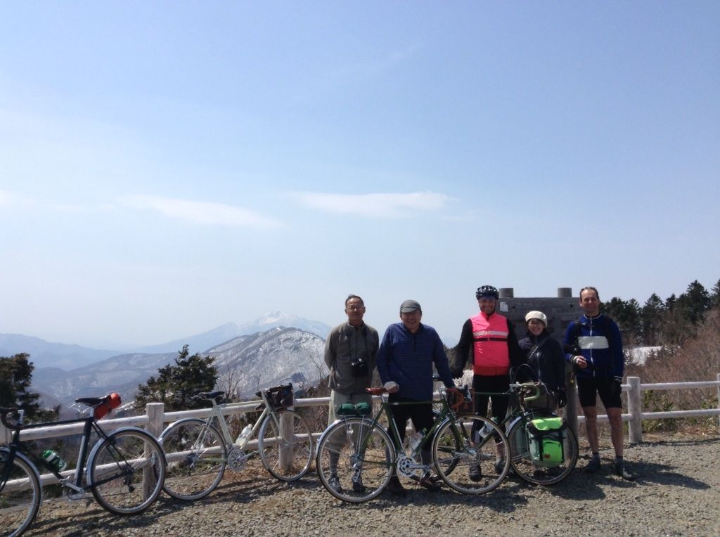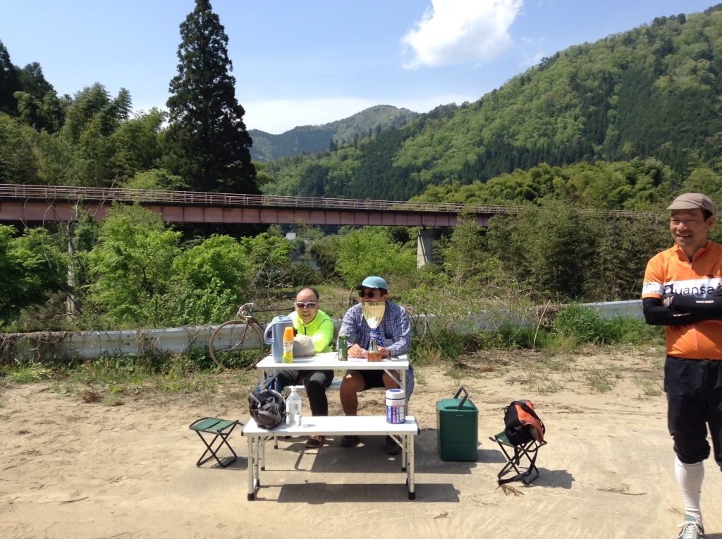 今回、ランデヴー会長クリちゃんが企画してくれたコースは油山温泉を拠点に安倍川を存分に楽しむコース。とでも言いましょうか。。初日は安倍峠を目指して安倍川を遡り峠で富士山をしっかり拝んできました。なんと標高差1100メートル以上。かつてランデヴーでこんな企画があったでしょうか。。もちろん自力で走った方もおられますがタンデムで京都から参加した我々は クリ会長がワンボックスで峠まで運んでくれました!言い訳がましくなりますが現地でのことはまかせっきりで参加した我々。なんとウィンドブレーカーなどの用意もなく半袖短パンで1460メートル地点からダウンヒルすることに。。!ストーカー側の私はまだましでしたが店長は羽毛が生えてくるんじゃないかというほどの鳥肌で凍えて下りました。しかし、素晴らしいコースでしたよ。深い谷、手つかずの美しい山々。雄大な河川。静岡にもこんなところがあるんだ、と再発見。今度はぜひソロで楽しみたいものです。