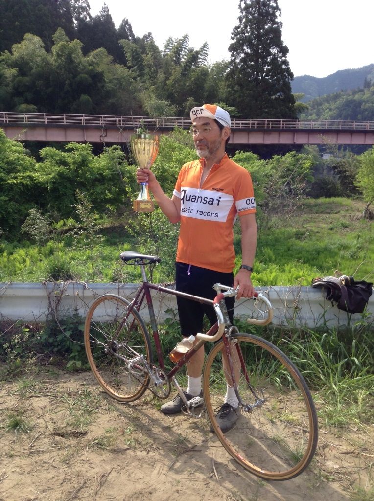 少し大きめの店長のカンビオコルサで参加した大介。初めてのカンビオもすぐにマスターしたのですが。。。うーん、レースの雰囲気じゃないなー。
