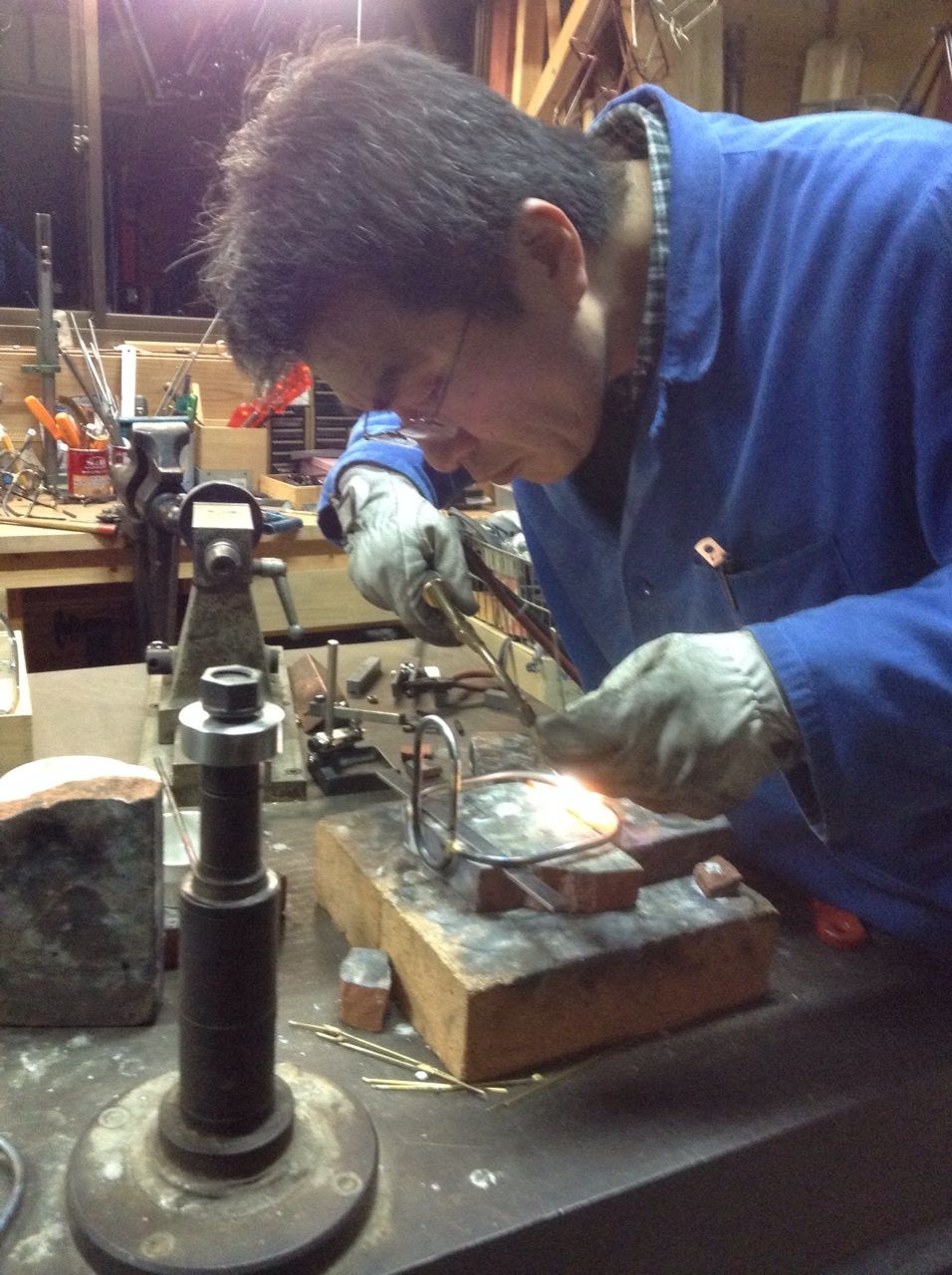 ただ今組立中なのはKさんの2台目グランボア。カラーリングといい、所々の細工といい、突っ込みどころ満載の一台です。 フレーム状態よりも完成車になったほうがグッと良くなる、オーダー時に完成車のイメージがちゃんとできている証ですね。他にも店内にはリスト掲載中のエルスやルーテンス、バラ、掲載していないエルスやマラストーニ、などいろいろございます。アイズでオール鍍金を施したルネエルスも素晴らしい出来上がりでオーナーのご来店をお待ちしていますよ。