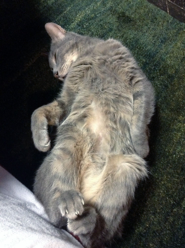 ランちゃんは仰向けが大好き。お腹をなでるとゴロゴロが止まりません。