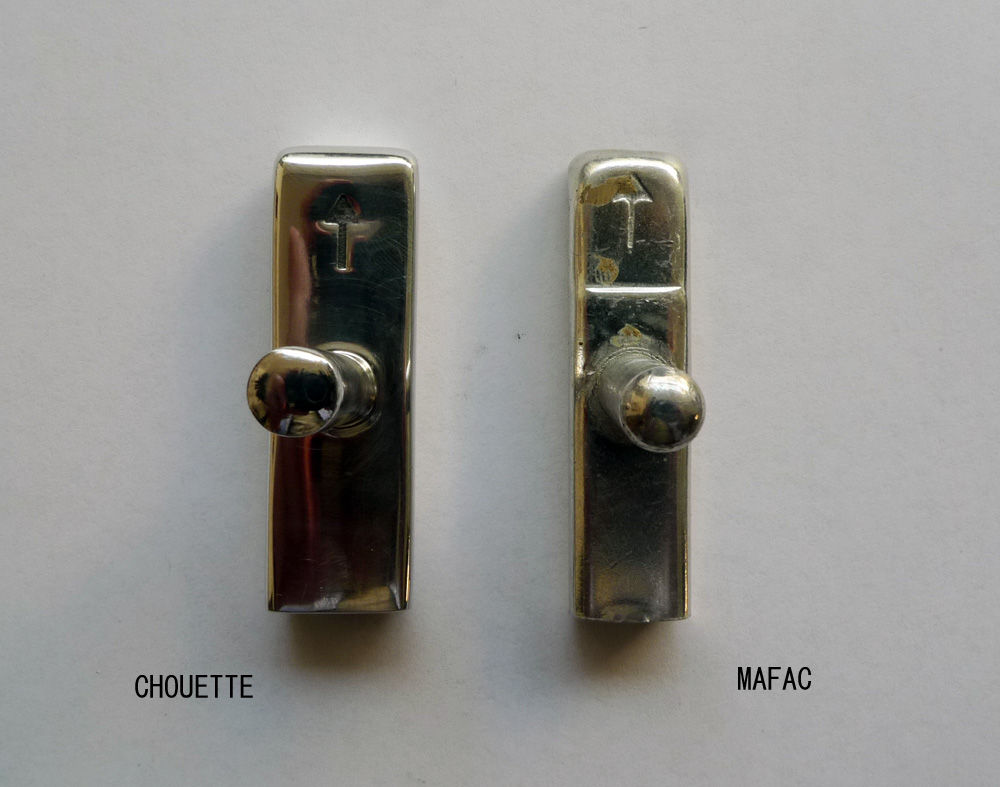 そして、内側。マハックは手の部分が舟本体にカシメて固定されているのがわかります。このカシメで固定されているだけの手の部分を何度もたたいたり、曲げたりしたらどうなるかは割と簡単に想像がつきます。手と舟の部分が完全に外れてしまわないまでもガタが出てしまっている舟もあるかもですよ。