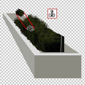 樹木を植えます。アプローチの左側に現在植込みがあるので、ここの樹木を移植します。同じ写真内に樹木が無くても、別の写真から切り抜いてくればOKです。