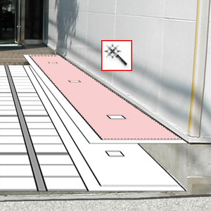 赤で着色した範囲を消去するような場合、選択しやすい植込み内の部分をまず「自動選択ツール」や「長方形選択ツール」で選択します。