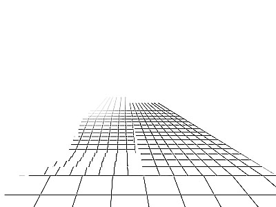 パースと同じく水平線の集まる「消点」が存在します。道路と外壁の延長線は水平なので、ひとつの「消点」に集まっていきます。