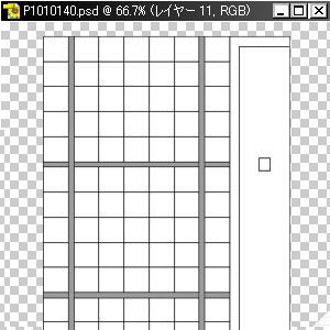 前工程で作った線画をPhotoshop上に取りこみます。取り込む方法や図面レイヤの扱いは【図面に色…】の項を参考にして下さい。
