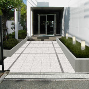 玄関アプローチをちょっと豪華に改修します。現状のアスファルトを石貼りとし、