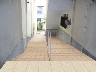 【お色直し】の項目で綺麗にした通路の写真をもとに、仕上がりイメージを作成したものです。