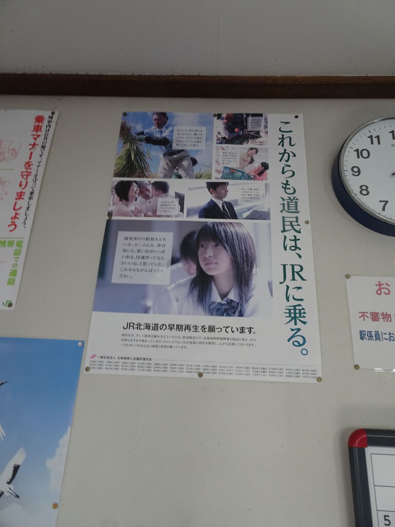 音別駅舎内。JR利用促進。ハナミズキで描かれた90年代後半が一番JR北海道が頑張ってた時期なんでしょうね。