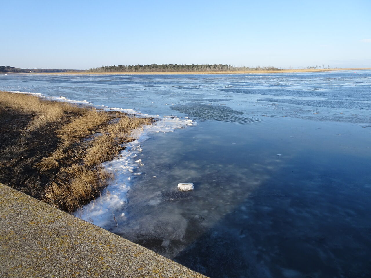 春国岱のトドワラ。雪はありませんでしたが、川や池は凍ってます。道中立派な角の鹿と遭遇してびっくり