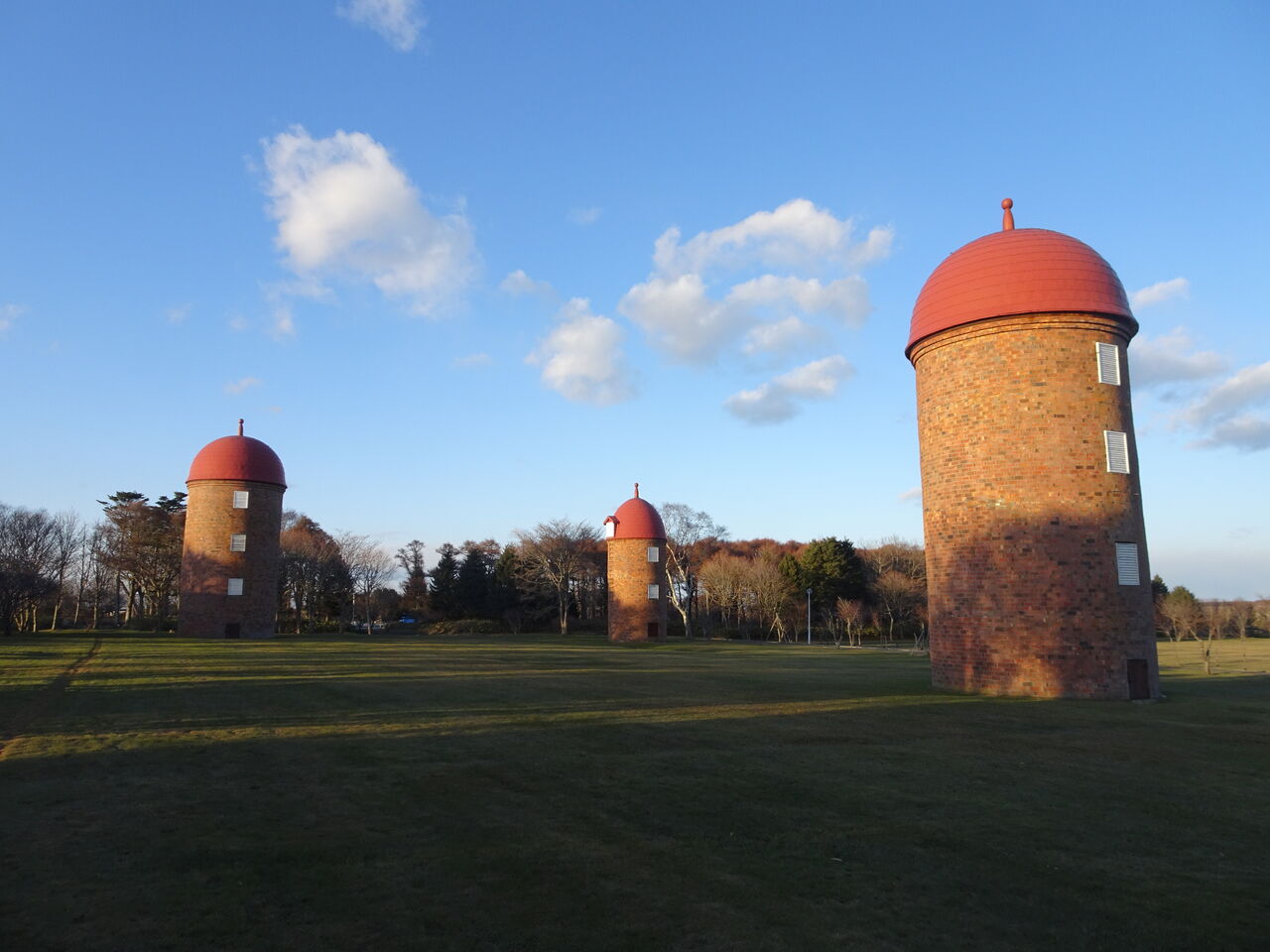 根室市内の明治公園。洒落乙なサイロが3本。やっぱ北海道開拓の最初の場所の一つだから、どこか垢抜けてるんですよね。