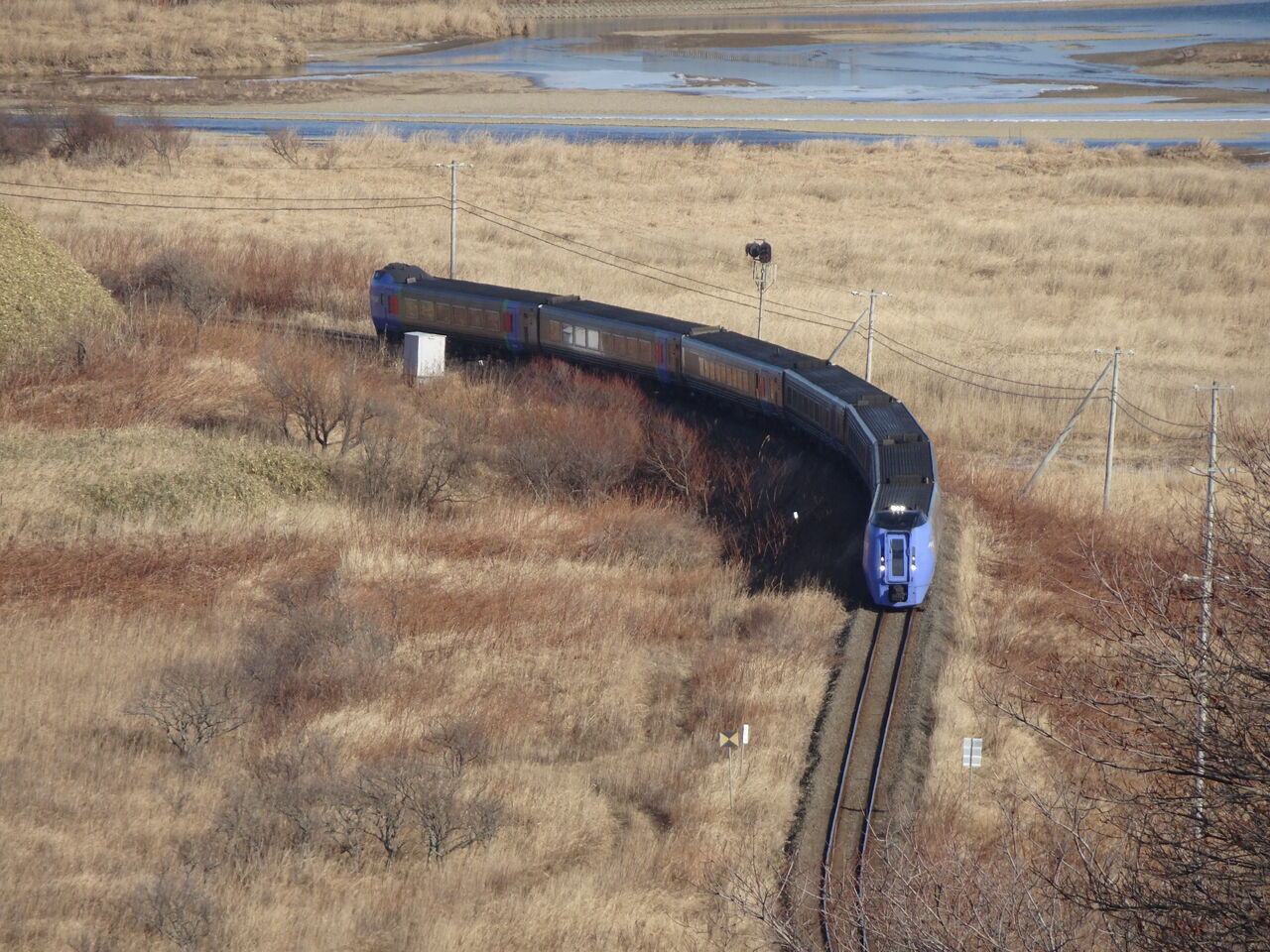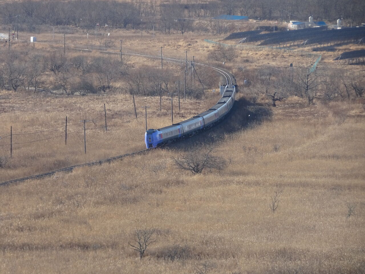 厚内方面が撮影名所ですが、太陽の位置で朝早い時間がベストなんですかね。この日は正午ごろ。列車が画の中心ずれてます。失敗。