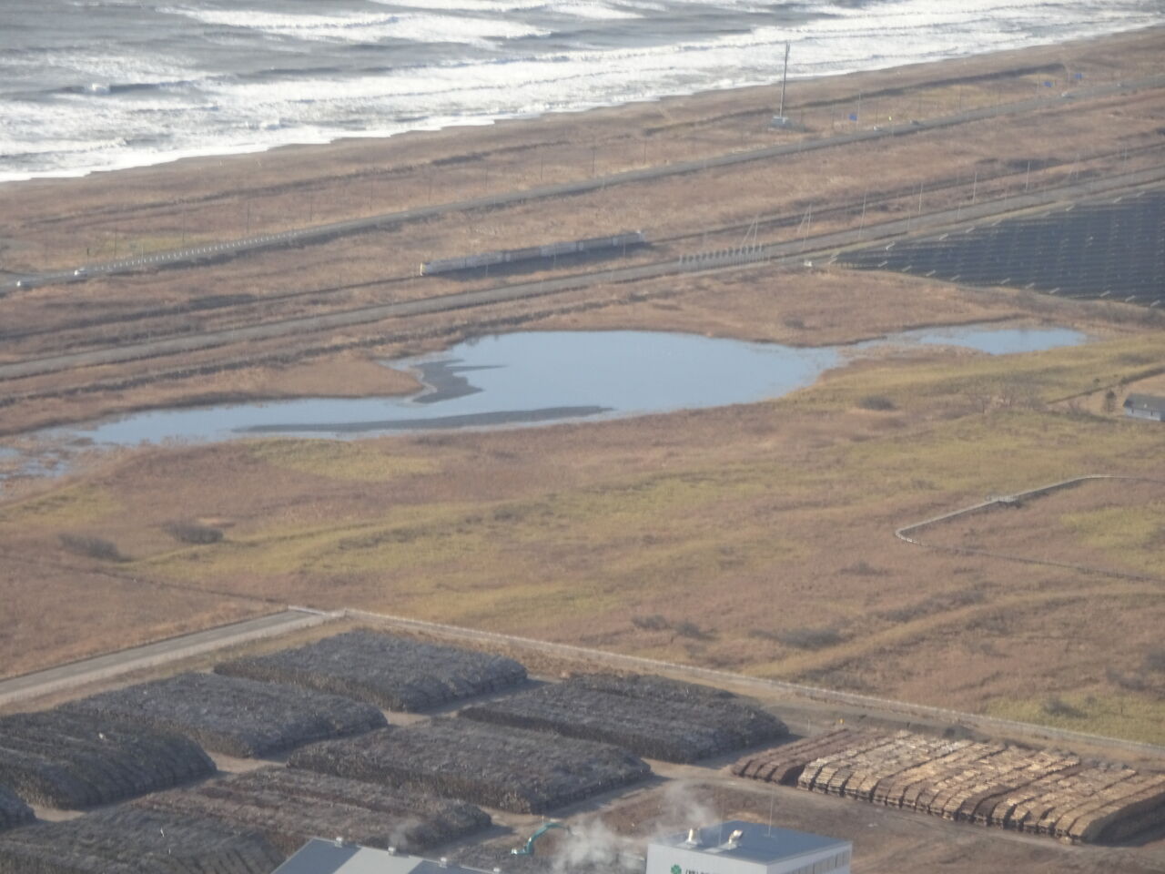 釧路上陸です。線路に列車が!白いんでキハ261がキハ283置き換えの為に試運転でもしてるんでしょうか?それにしても着陸時結構揺れましたね。後方の席だったので飛行機の胴体の筒が大きく揺れてるのが分かりました。