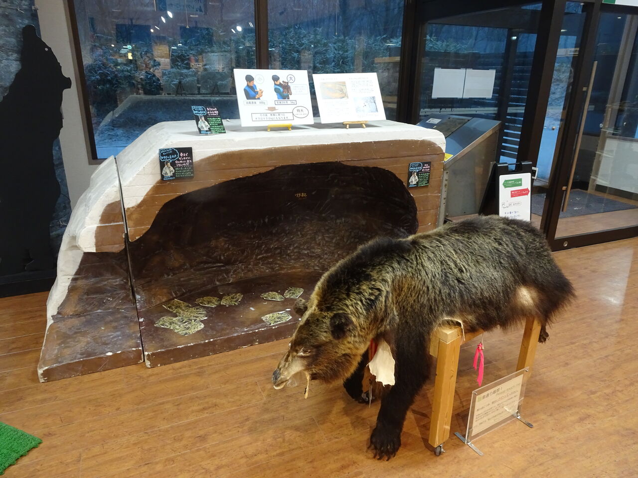 知床峠のを少し進んで知床自然センターはどこかの財団が運営してて、立派でしたね。グッズも高いし(寄付も有るのでしょう)、アウトドアブランドの服売ってたり、カフェのコーヒーは600円!でした。私、動物の冬眠に憧れている?!ので、巣穴の立体模型が有ると興奮w寝てみたいw 夏に開催する知床自然教室は本当に自然に触れられる貴重な体験になりそう