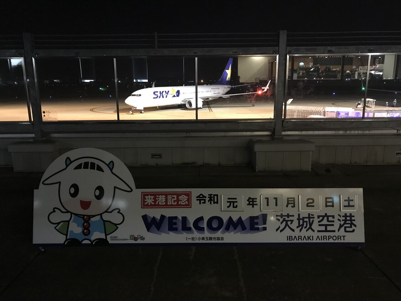 東横インの朝食は、開始時におばさん達が「私達が心込めて作りました」って挨拶するんですね。私一番乗りで挨拶前に「もういいですか?」って失礼なやつでした。仕事場ぼちぼち。その後は急いで茨城空港に見学に行きます。水戸駅から車で45分。着陸は建物内移動中に見逃して、離陸は見ましたが送迎デッキの前で飛ぶわけではないのでちと残念。駐機は斜め停めです。