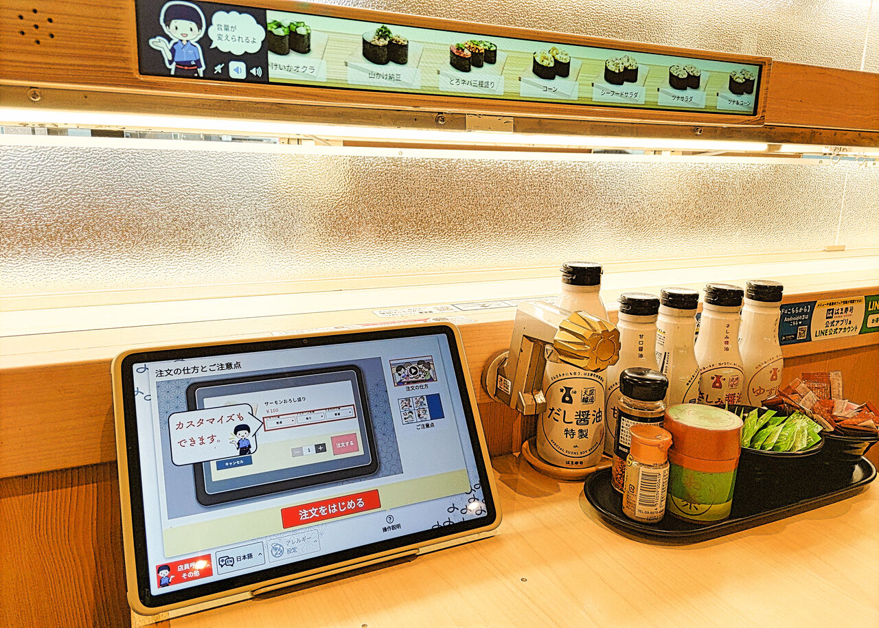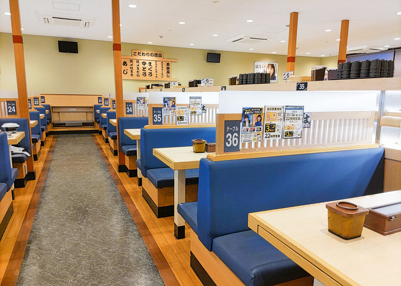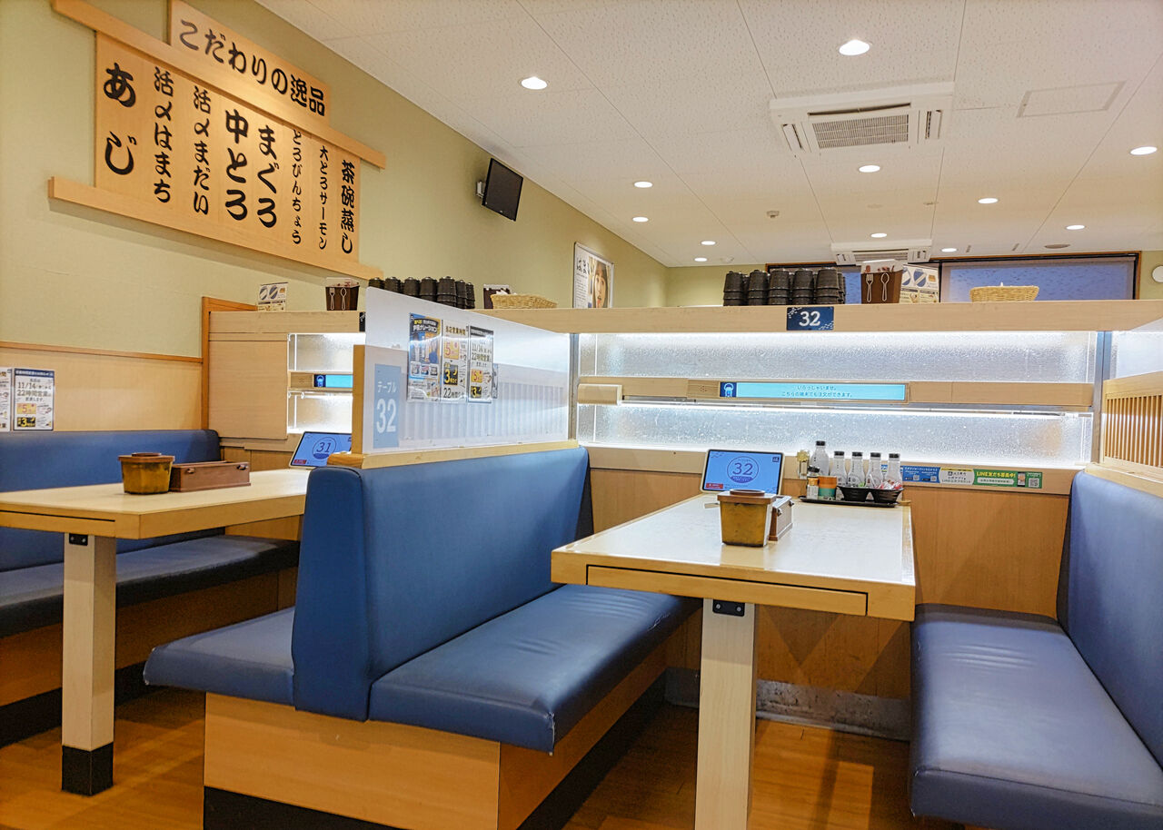 回転寿司店らしくお一人様でも気軽に利用できるカウンタ―席もありますが、朝の早い時間帯はお席に余裕があり、この日は少人数の場合でもテーブル席を案内していただけました。
