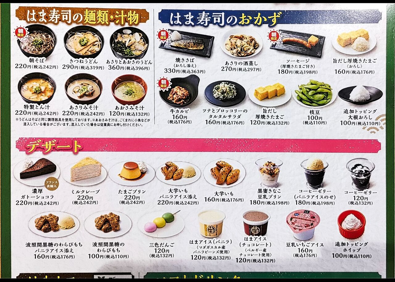 はま寿司ではまだ珍しい朝食が春日井のお店でいだけるようになりました。モーニング感覚で楽しめるはま寿司の朝食です。