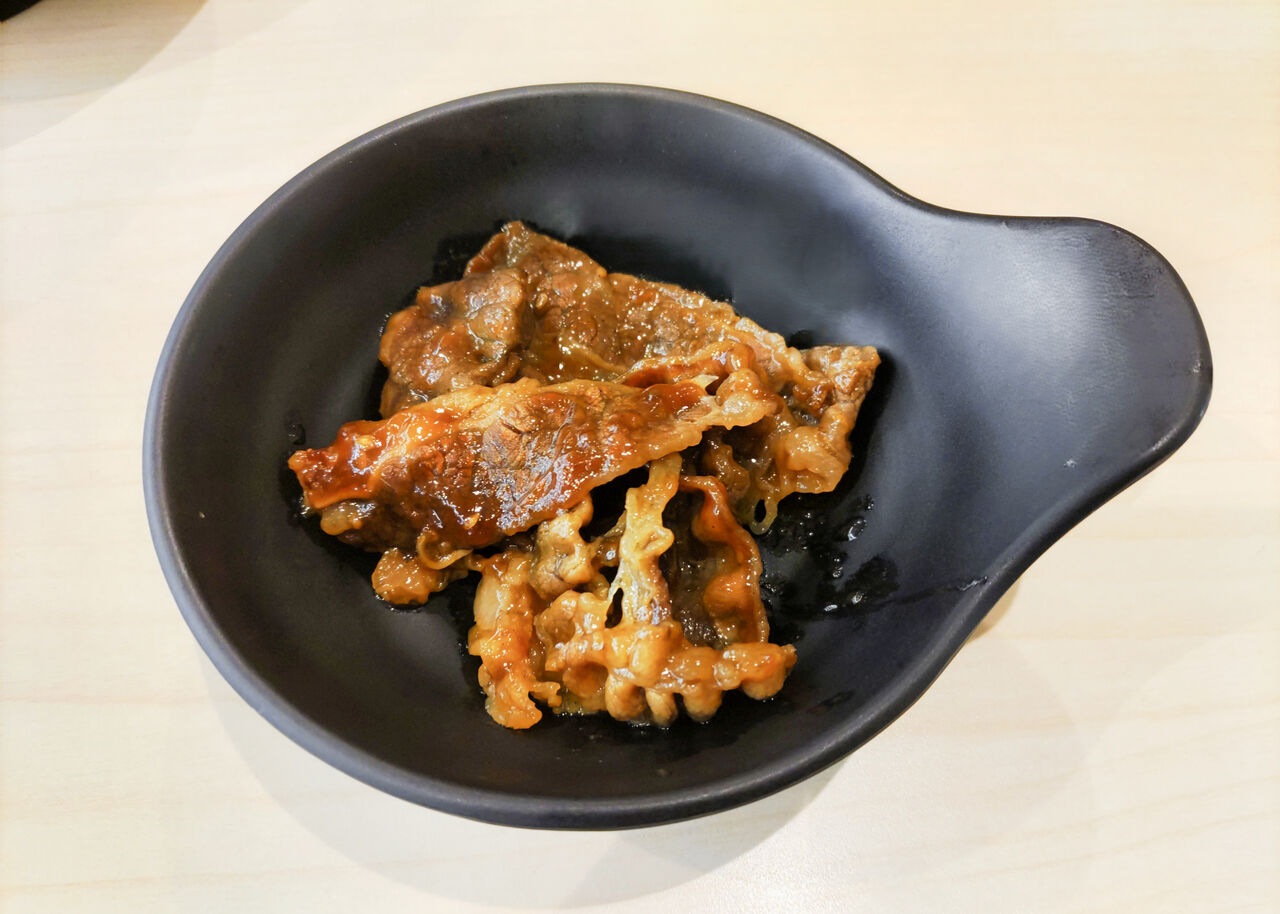 牛肉カルビは、薄くバリとした食感の味付け肉で、サクッと握り寿司とともにいただくにはぴったりのおかずです。
