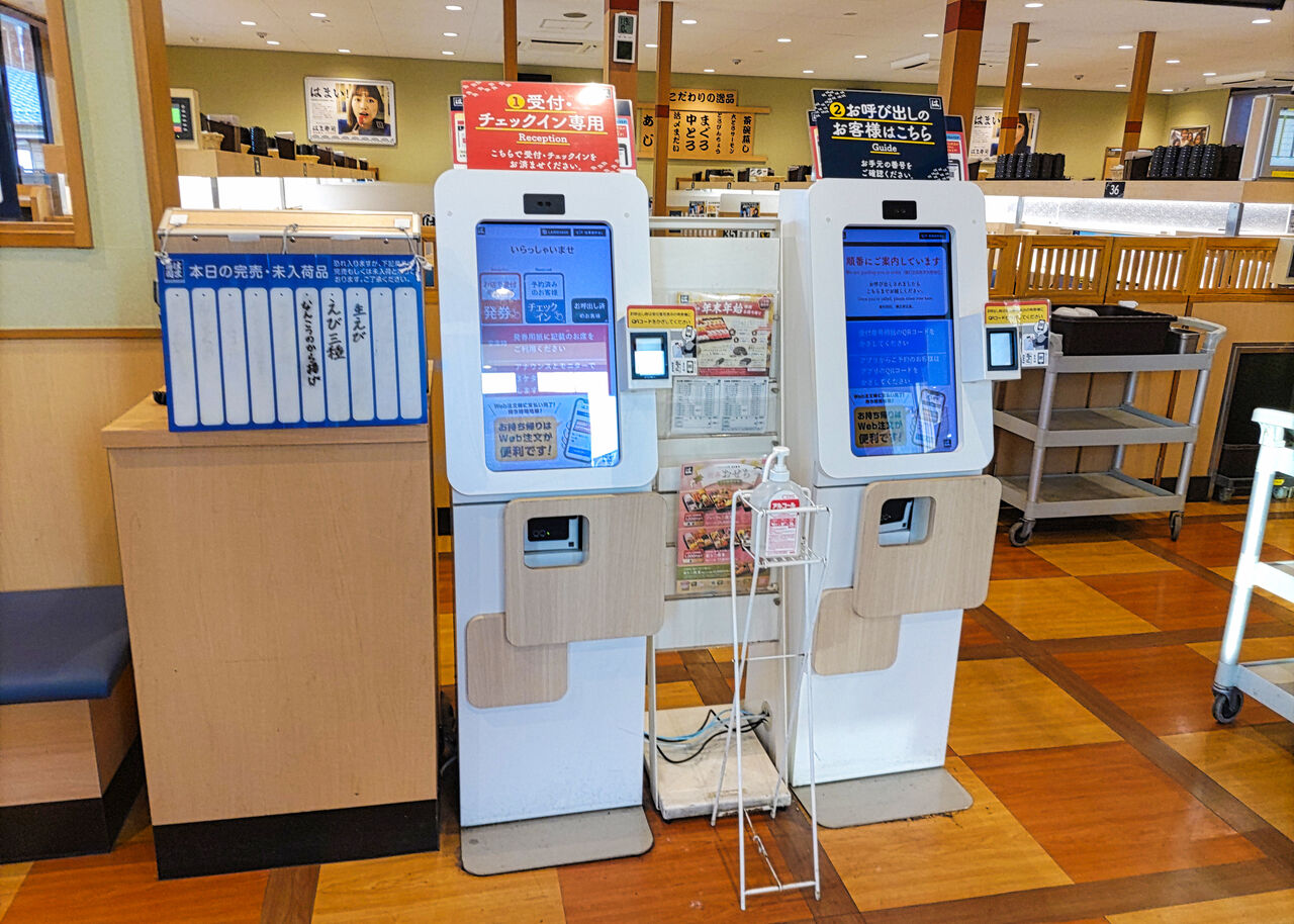 店内は、まだ朝営業が開始されたことが広く知れ渡っていないようで、昼間の賑やかさから想像もできないような朝の静けさが漂っています。受付機のところでスタッフの方から案内されてから客席へ向かうことになります。