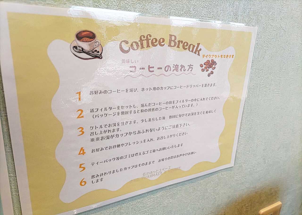 病院やクリニックで処方されるお薬をお客さんに提供する調剤薬局であるとともに、気軽にカフェのみでも楽しめるお店です。