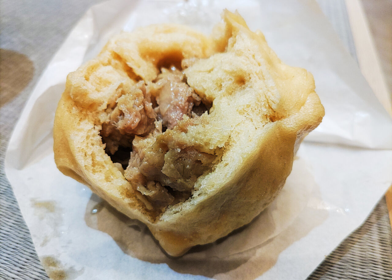 肉まんの生地にあたる饅頭はふんわりモチッとして柔らかく、中にはブリブリのお肉がたっぷり含まれて、出来立てならではの旨みが味わえます。