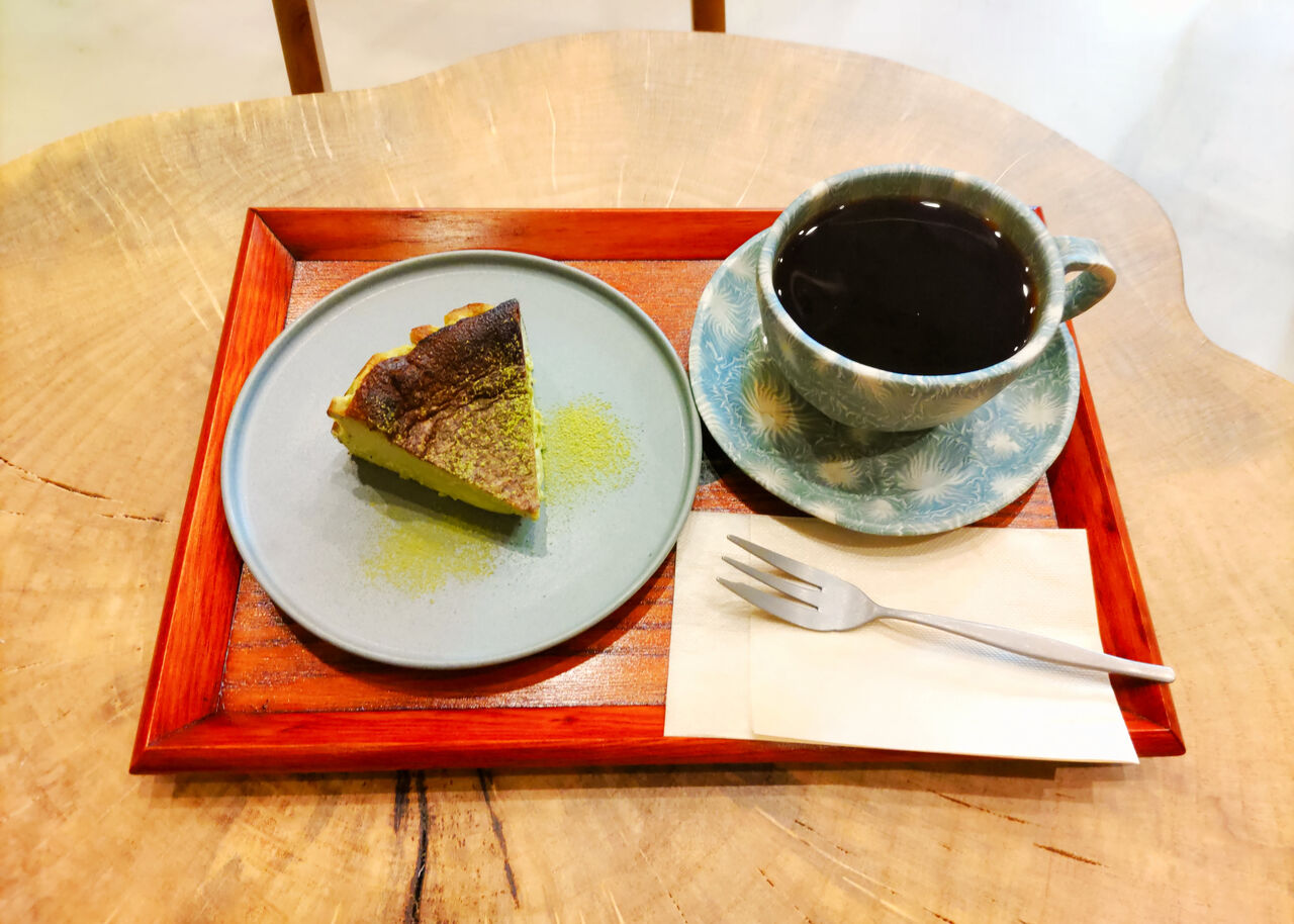 珈琲・仏教ブレンド(682円)、抹茶バスクチーズケーキ(660円)をイートインにていただくことにします。