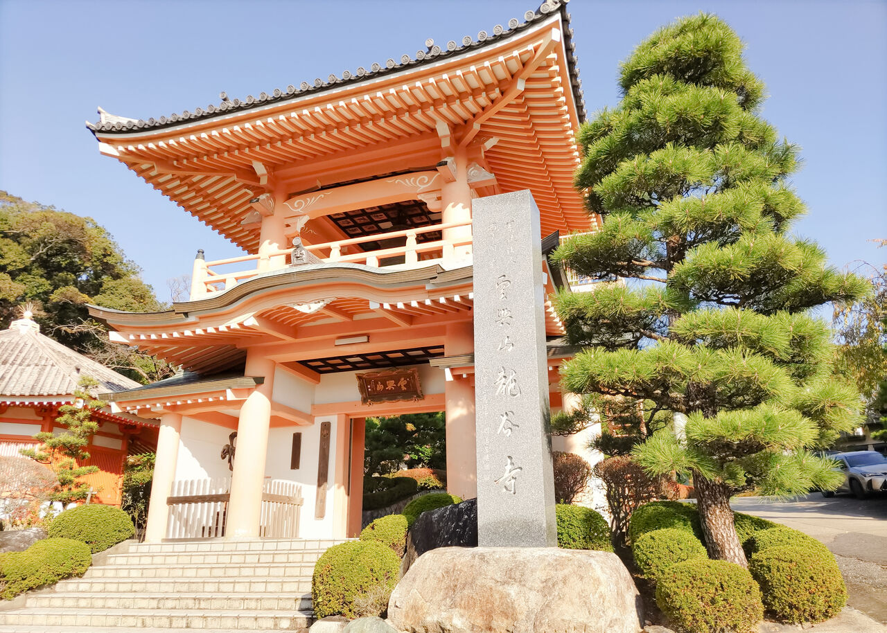 雲興山 龍谷寺は、15世紀の室町時代後期の戦国時代真っ只中の時世に開山して以来、約500年の歴史を歩む曹洞宗の寺院です。朱色の二層からなる山門(鐘楼門)は、山門整備事業により1985年(昭和60年)建立されました。