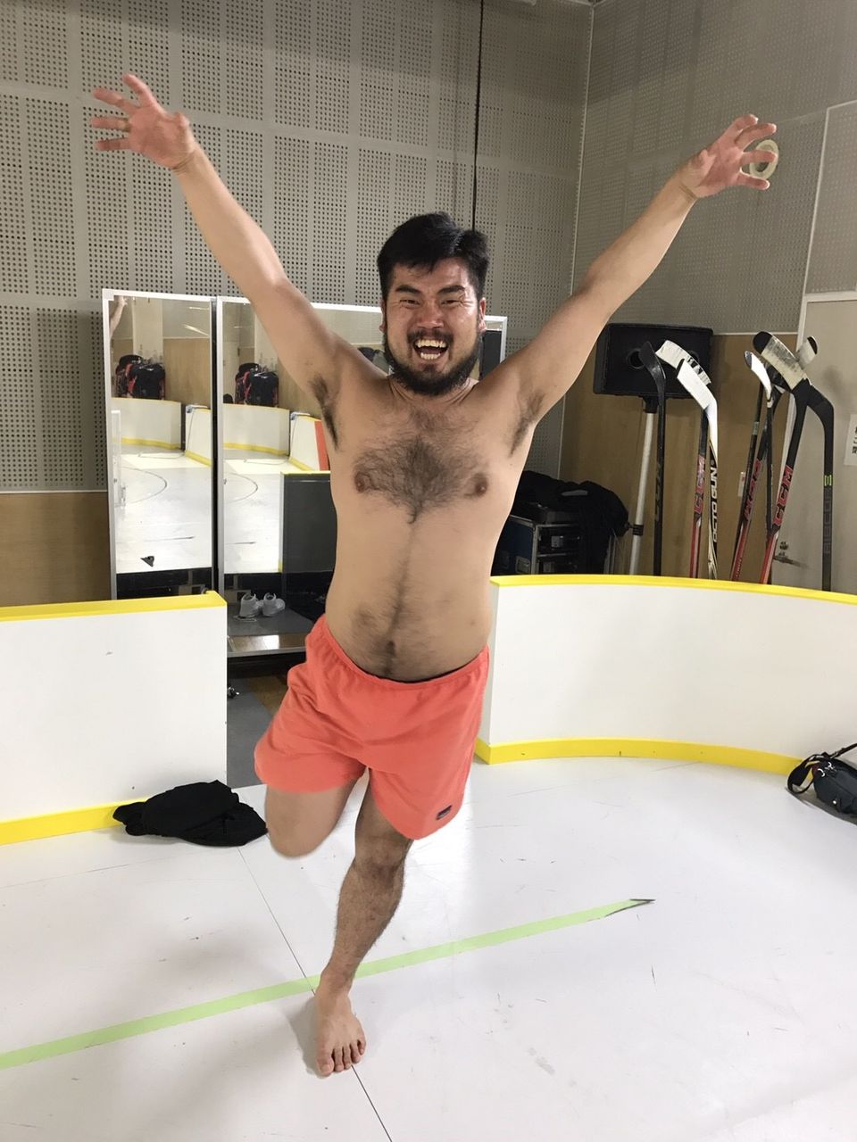 初演を超えるホッケーシーンを作るために、太ももが悲鳴をあげるまで動き回ったり、